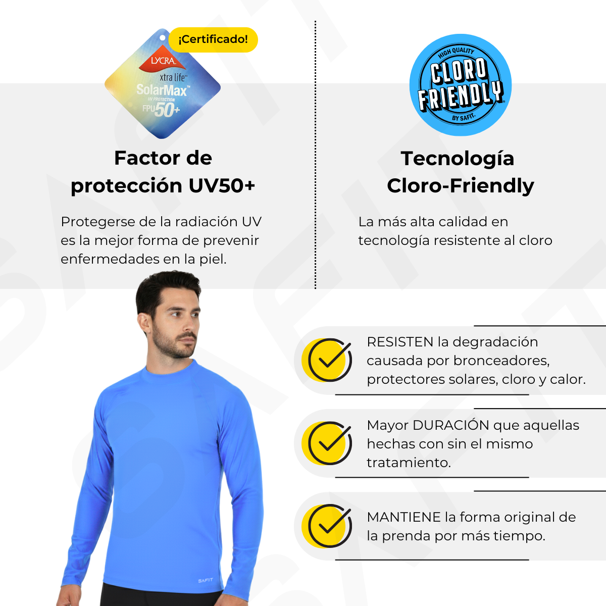 Remera de lycra especiales para el sol y agua, con protección UV50 (contra los rayos solares) para chicos y grandes.