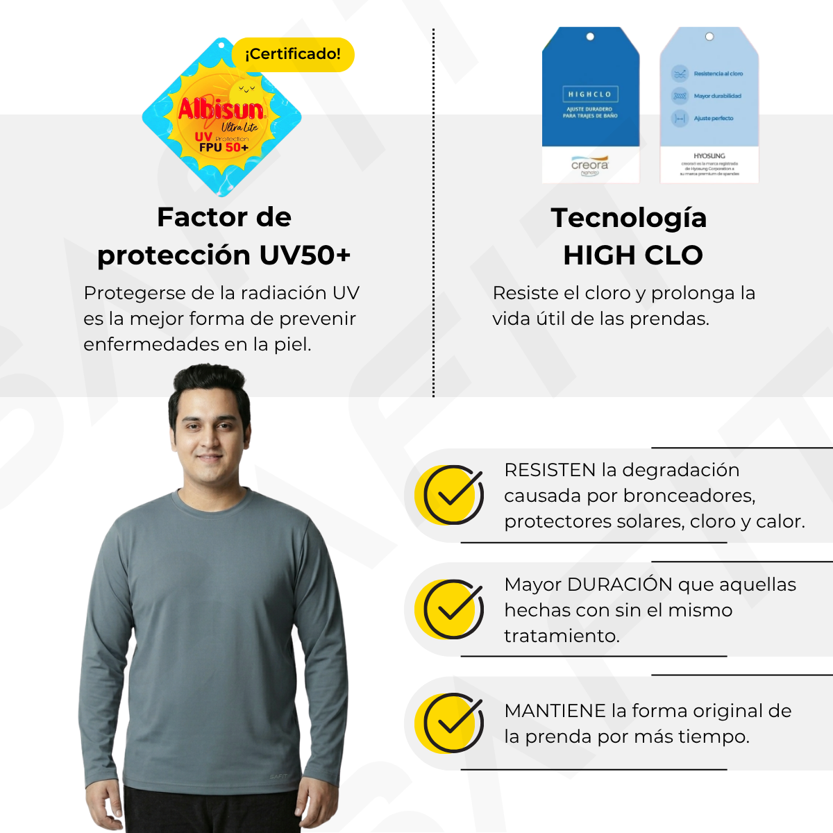 El tejido Lycra está especialmente diseñado para obtener un excepcional poder de recuperación, ajuste y libertad de movimiento.