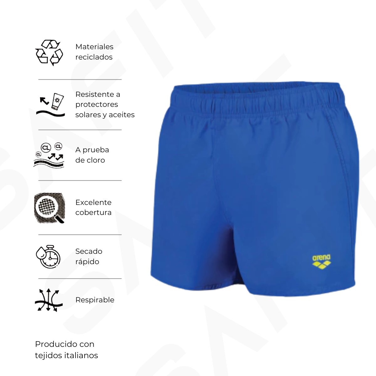 Nuestro Short Fundamentals X es una opción que no pasa de moda para los días llenos de deportes en la playa. Con este traje de baño te sentirás cómodo ya sea que estés nadando, jugando en playa o tomando algo con amigos. arena Short Fundamentals es el traje de baño clásico, con pequeños detalles de diseño que lo destacan como nuestra logo en la parte delantera en contratono o la etiqueta en nuestro cyan clásico en la espalda. Su corte recto, cuenta con un bolsillo trasero con un ojal metálico que permite liberar exceso de humedad y cuenta con cintura con elástico y cordón.